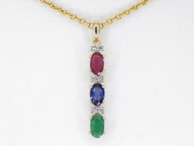 Gouden hanger met multicolour edelstenen en diamant